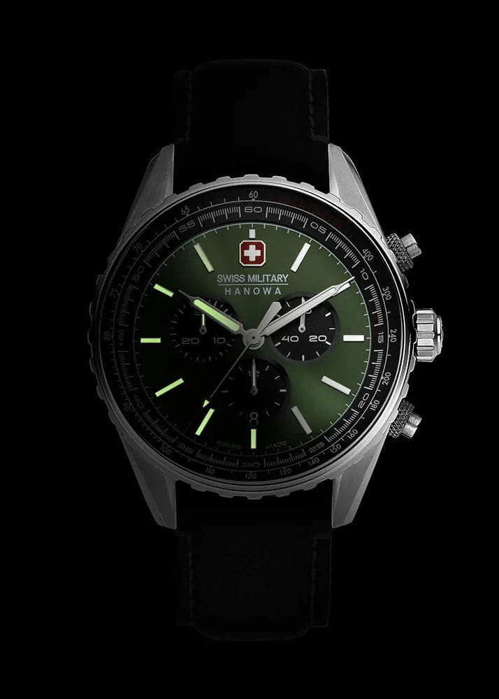 Мужские швейцарские часы Swiss Military Hanowa SMWGC0000305 – это элегантные часы, сочетающие в себе классический дизайн и современную функциональность. Корпус из нержавеющей стали диаметром 44 мм сбалансирован и элегантен. Сапфировое стеклоСапфировое стеклоПрочный и надёжный материал из кристалла сапфира синтетического происхождения, характеризующийся особой твёрдостью и устойчивостью к царапинам и повреждениям. с антибликовым покрытием защищает циферблат от царапин и обеспечивает отличную читаемость при любом освещении. Кожаный ремешок на стандартной застёжке идеально дополняют дизайн часов, обеспечивая комфортное ношение. Люминесцентное покрытиеЛюминесцентное покрытиеПозволяет считывать показания времени в темноте. Производители наносят на стрелки, часовые индексы, безель или поверхность циферблата светонакопительный состав, дающий холодное свечение. стрелок и меток позволит вам следить за временем даже в полной темноте. Стальной безельБезельВнешний ободок, закрепляющий стекло. В спортивных часах так называется поворотное кольцо с делениями на циферблате, выполняет роль таймера – замеряет отрезки времени на шкале. Неподвижный безель – элемент декора. Однонаправленно вращающийся безель на дайверских часах позволяет фиксировать моменты погружения и выныривания на поверхность. с PVD-покрытиемPVDУльтратонкое покрытие наносится в технике вакуумного напыления, сочетает в себе нитрид титана особой прочности со слоем золота или оксида хрома. Несёт в себе декоративную или защитную функцию.. Часы оснащены центральной секундной стрелкой и окошком даты в положении «6 часов», что делает их функциональными для повседневного использования. Завинчивающаяся прозрачная задняя крышка, тахиметрТахиметрРазмеченная шкала, располагается на ободке или безеле часов. Тахиметр позволяет рассчитать скорость на определённом участке пути, расстояние измеряется в километрах или милях. по внешнему краю. Водонепроницаемость до 100 метров. Идеальный выбор для тех, кто ценит качество и долговечность.