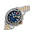 Мужские швейцарские часы с сапфировым стекломСапфировое стеклоПрочный и надёжный материал из кристалла сапфира синтетического происхождения, характеризующийся особой твёрдостью и устойчивостью к царапинам и повреждениям. Swiss Military Hanowa Black Marlin SMWGH0001760, кварцевый механизм с высокой точностью. Сапфировое стеклоСапфировое стеклоПрочный и надёжный материал из кристалла сапфира синтетического происхождения, характеризующийся особой твёрдостью и устойчивостью к царапинам и повреждениям. устойчивое к появлению царапин, обладающее высокой прозрачностью. Корпус часов изготовлен из стали. Вращающийся безельБезельВнешний ободок, закрепляющий стекло. В спортивных часах так называется поворотное кольцо с делениями на циферблате, выполняет роль таймера – замеряет отрезки времени на шкале. Неподвижный безель – элемент декора. Однонаправленно вращающийся безель на дайверских часах позволяет фиксировать моменты погружения и выныривания на поверхность. из стали PVD-покрытиемPVDУльтратонкое покрытие наносится в технике вакуумного напыления, сочетает в себе нитрид титана особой прочности со слоем золота или оксида хрома. Несёт в себе декоративную или защитную функцию. и керамики. Центральные часовая и минутная стрелки, секундная стрелка вынесена на малый циферблат. Окошко даты находится в положении 6 часов. Стрелки и метки с люминесцентным покрытиемЛюминесцентное покрытиеПозволяет считывать показания времени в темноте. Производители наносят на стрелки, часовые индексы, безель или поверхность циферблата светонакопительный состав, дающий холодное свечение.. Класс водозащиты: 200 метров, позволит плавать, нырять и заниматься другими водными видами спорта. Стальной браслет с частичным PVD-покрытиемPVDУльтратонкое покрытие наносится в технике вакуумного напыления, сочетает в себе нитрид титана особой прочности со слоем золота или оксида хрома. Несёт в себе декоративную или защитную функцию.на раскладной застёжкеРаскладная застёжкаТакой тип застёжки используется только на браслетах из металла. Она никогда не раскрывается полностью, происходит разделение на 2 и более частей. Раскладывающая застёжка снизит вероятность потери часов к минимуму..
