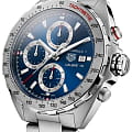 44-миллиметровый спортивный хронограф с переливающимся синим циферблатом, синими и серебряными вспомогательными циферблатами, матовым и полированным корпусом из нержавеющей стали. Неподвижный стальной безель с тахиметрической шкалой для преобразования расстояния в скорость. Мужские часы с хронографом TAG Heuer Formula 1 CAZ2015.BA0876, механический механизм (автоматический калибр) с высокой точностью. Сапфировое стекло устойчивое к появлению царапин, обладающее высокой прозрачностью. Класс водозащиты: 200 метров, позволит плавать, нырять и заниматься другими водными видами спорта. Корпус часов изготовлен из стали, серебристого цвета.