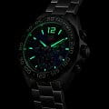 Мужские швейцарские наручные механические часы-хронографХронографФункция позволяет измерять отрезки времени с особой точностью: часы, минуты, секунды. Верным признаком хронографа является наличие на циферблате 3 дополнительных окошек-счётчиков. TAG Heuer Formula 1 Chronograph CAZ101AV.BA0842. Сапфировое стеклоСапфировое стеклоПрочный и надёжный материал из кристалла сапфира синтетического происхождения, характеризующийся особой твёрдостью и устойчивостью к царапинам и повреждениям. устойчивое к появлению царапин, обладающее высокой прозрачностью. Стрелки и метки с люминесцентным покрытиемЛюминесцентное покрытиеПозволяет считывать показания времени в темноте. Производители наносят на стрелки, часовые индексы, безель или поверхность циферблата светонакопительный состав, дающий холодное свечение.. Класс водозащиты: 200 метров, позволит плавать, нырять и заниматься другими водными видами спорта. Корпус часов изготовлен из стали. Браслет с раскладной застёжкойРаскладная застёжкаТакой тип застёжки используется только на браслетах из металла. Она никогда не раскрывается полностью, происходит разделение на 2 и более частей. Раскладывающая застёжка снизит вероятность потери часов к минимуму.. Вращающийся стальной безельБезельВнешний ободок, закрепляющий стекло. В спортивных часах так называется поворотное кольцо с делениями на циферблате, выполняет роль таймера – замеряет отрезки времени на шкале. Неподвижный безель – элемент декора. Однонаправленно вращающийся безель на дайверских часах позволяет фиксировать моменты погружения и выныривания на поверхность. с PVD-покрытиемPVDУльтратонкое покрытие наносится в технике вакуумного напыления, сочетает в себе нитрид титана особой прочности со слоем золота или оксида хрома. Несёт в себе декоративную или защитную функцию..