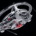 Революционные часы покорят вас и всех окружающих своим уникальным дизайном и механизмом. Monaco V4 Tourbillon. Лимитированная серия - 50 экземпляров. Скелетонизированные часы. Турбийон закреплен на V-образном мосту, который приводится в движение революционным механизмом на кожаных ремнях. Толщина ремней 0,07мм, что соответствует толщине человеческого волоса. В механизме 214 деталей, 46 камней, частота 28800 полуколебаний в час. Четыре заводных барабана механизма обеспечивают 40-часовой запас хода. Циферблат украшен гравировкой Cotes de Geneve и яркими рубиновыми камнями, так хорошо контрастирующими с черным цветом. Сапфировое стеклоСапфировое стеклоПрочный и надёжный материал из кристалла сапфира синтетического происхождения, характеризующийся особой твёрдостью и устойчивостью к царапинам и повреждениям. с двухсторонним антибликовым покрытием позволит наблюдать за работой механизма даже в самый солнечный день. Прозрачная сапфировая задняя крышка. Ремешок с раскладывающейся застежкой.