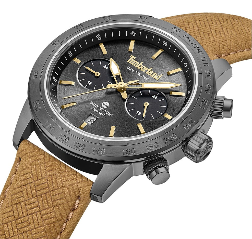 Американские мужские часы с тахиметромТахиметрРазмеченная шкала, располагается на ободке или безеле часов. Тахиметр позволяет рассчитать скорость на определённом участке пути, расстояние измеряется в километрах или милях. Timberland TDWGF0075102 — это сочетание надежности, функциональности и уверенного стиля. Модель идеально подойдет для тех, кто ценит точность и выносливость в каждой детали. Часы оснащены кварцевым механизмом , гарантирующим высокую точность хода и минимальное обслуживание. В конструкции использовано прочное минеральное стеклоМинеральное стеклоМинеральное стекло представляет собой искусственно выращенный минерал кварца. Такое стекло отличается особой устойчивостью к повреждениям и царапинам. Уступает по некоторым качествам сапфировому стеклу., устойчивое к мелким повреждениям и долговечное в использовании. Корпус выполнен из нержавеющей стали, что обеспечивает стойкость к царапинам и длительный срок службы без потери внешнего вида. Стрелки и метки часов имеют люминесцентное покрытиеЛюминесцентное покрытиеПозволяет считывать показания времени в темноте. Производители наносят на стрелки, часовые индексы, безель или поверхность циферблата светонакопительный состав, дающий холодное свечение., позволяющее считывать время даже в условиях слабого освещения. БезельБезельВнешний ободок, закрепляющий стекло. В спортивных часах так называется поворотное кольцо с делениями на циферблате, выполняет роль таймера – замеряет отрезки времени на шкале. Неподвижный безель – элемент декора. Однонаправленно вращающийся безель на дайверских часах позволяет фиксировать моменты погружения и выныривания на поверхность. с IP-покрытиемIP-покрытиеМетод ионного напыления. Демонстрирует повышенную устойчивость к истиранию, окислению и химическим веществам. Под воздействием высокого давления и температуры около 1500°C молекулы металла надёжно соединяются с частицами корпуса часов.. Дизайн дополнен кожаным ремешком с классической застежкой и системой быстрой замены , что делает использование часов максимально удобным и комфортным при ежедневной носке. Класс водозащиты WR50 позволяет использовать часы в повседневных условиях, включая мытьё рук или прогулки под дождем.