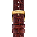 Прочный ремешок из натуральной кожи с тиснением под кожу крокодила обеспечивает надёжную фиксацию на запястье. Циферблат имеет лаконичное оформление, ни одна деталь не отвлекает от просмотра показаний времени. Элегантный аксессуар прекрасно подойдёт к деловому или повседневному образу. Кварцевый механизм ETA 902.101. Корпус с золотистым PVD-покрытиемPVDУльтратонкое покрытие наносится в технике вакуумного напыления, сочетает в себе нитрид титана особой прочности со слоем золота или оксида хрома. Несёт в себе декоративную или защитную функцию.. Габариты: 30 x 30 x 6,2 мм.