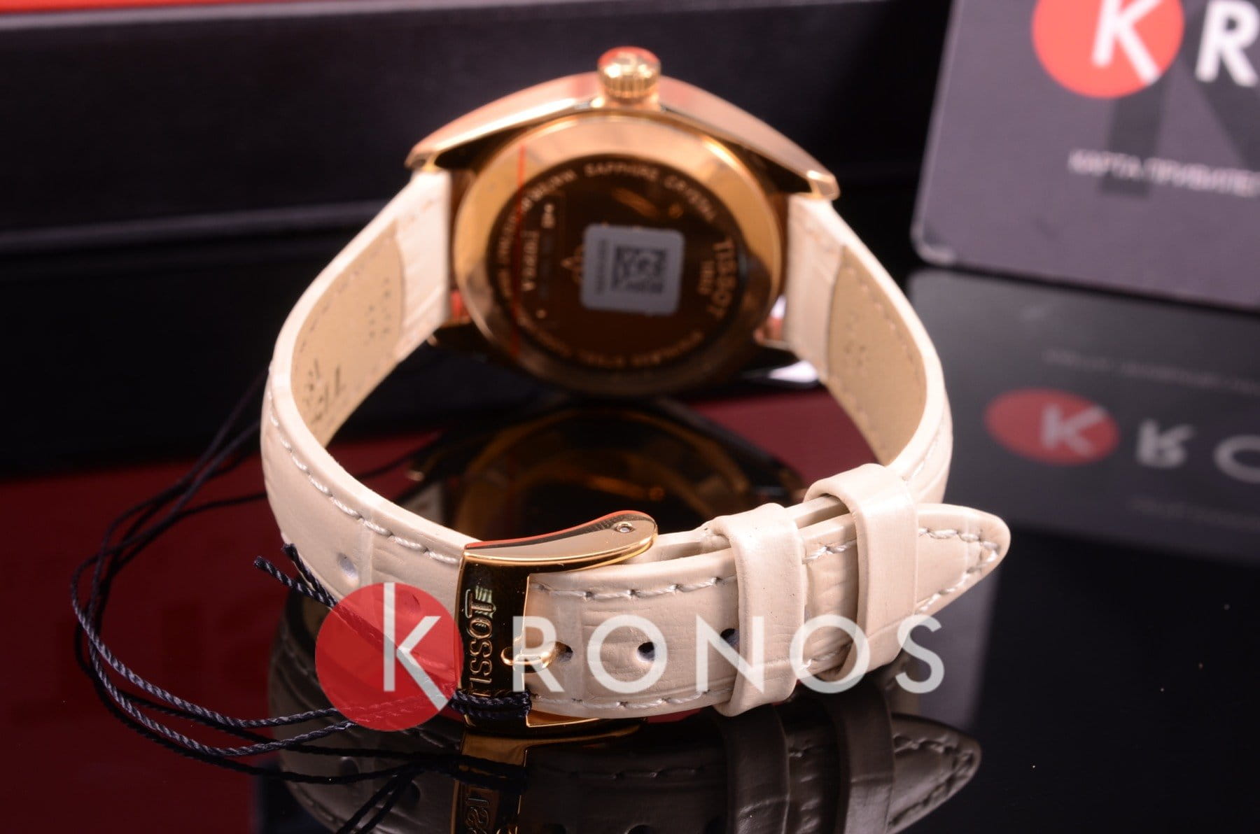 Ремешок из натуральной кожи в кремовом цвете идеально сочетается со светлым циферблатом и корпусом с PVD-покрытиемPVDУльтратонкое покрытие наносится в технике вакуумного напыления, сочетает в себе нитрид титана особой прочности со слоем золота или оксида хрома. Несёт в себе декоративную или защитную функцию. оттенка "розовое золото". Внутри заключён высокоточный кварцевый механизм ETA F04.111 с 3 камнями. Сапфировое стекло препятствует появлению царапин и отметин. Водонепроницаемость при давлении 10 бар. Люминесцентная подсветкаЛюминесцентное покрытиеПозволяет считывать показания времени в темноте. Производители наносят на стрелки, часовые индексы, безель или поверхность циферблата светонакопительный состав, дающий холодное свечение.. Апертура даты. Функция EOLEOLПредставляет собой систему, уведомляющую владельца часов о необходимости замены элемента питания. За 2 недели до полного разряда батарейки секундная стрелка перестаёт ходить чётко и начинает перепрыгивать на 3-4 деления.. Габариты: 33 x 33 x 9 мм.