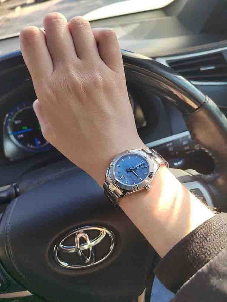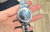 В оригинальный циферблат невозможно не влюбиться - переливающийся сине-чёрный перламутр заставляет задуматься о неизведанных морских глубинах или космических пространствах. Компактный стальной корпус. Кварцевый высокоточный механизм ETA 955.412. Прочное сапфировое стекло. Водонепроницаемость до 10 бар. Апертура даты. Функция уведомления о необходимости замены элемента питания. Габариты: 36 x 36 x 9 мм.