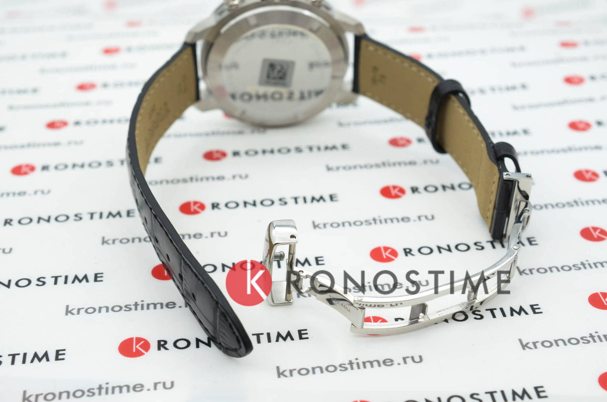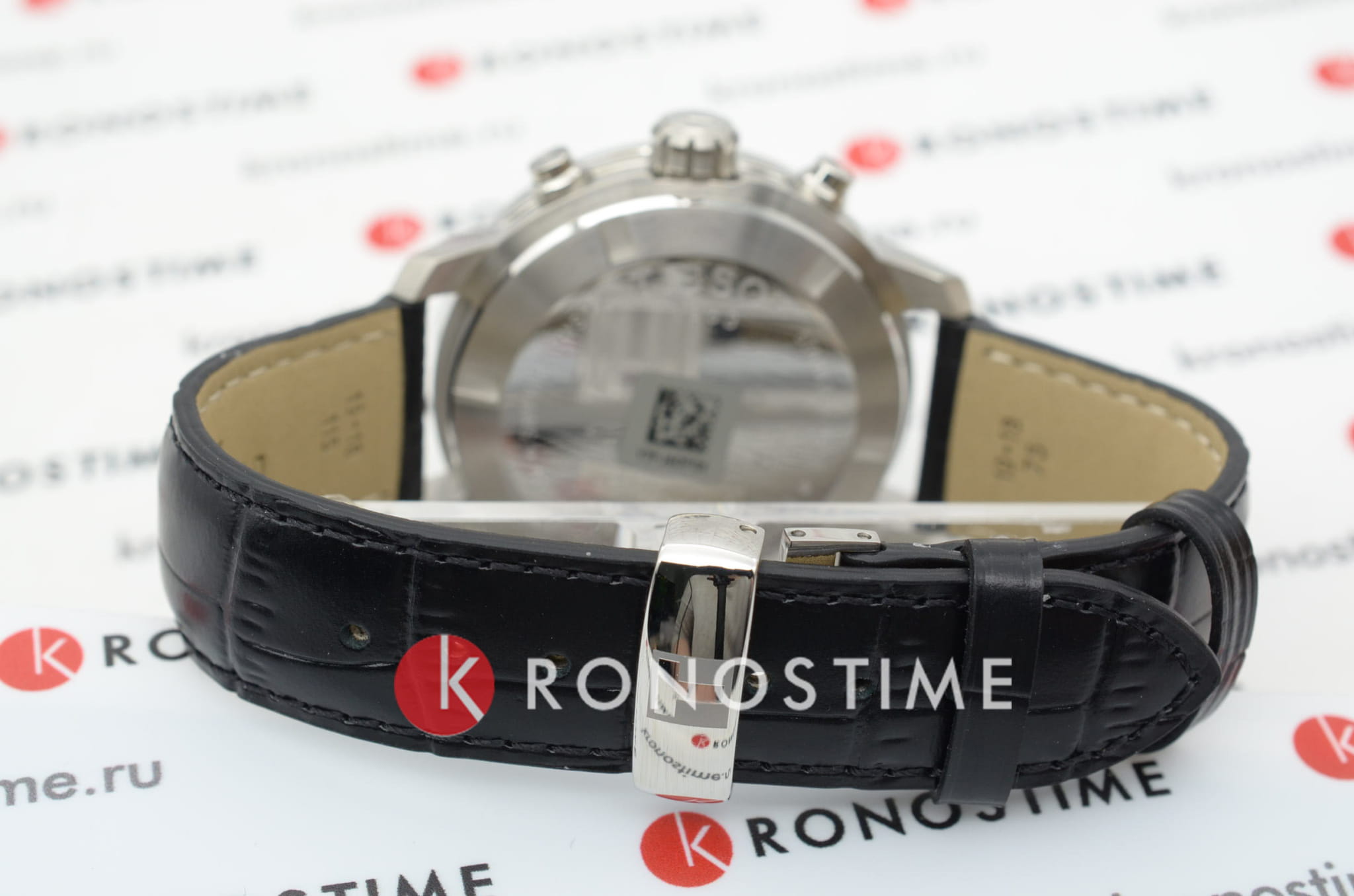 Секундная стрелка и стрелки счётчиков хронографаХронографФункция позволяет измерять отрезки времени с особой точностью: часы, минуты, секунды. Верным признаком хронографа является наличие на циферблате 3 дополнительных окошек-счётчиков. выполнены в жёлтом цвете, такая особенность привносит в общую картину эксклюзивность и спортивные элементы. Стильный аксессуар будет гармонично смотреться как с брючным строгим костюмом, так и с образом с джинсами. Часы комплектуются ремешком из натуральной кожи с рисунком под кожу крокодила.Кварцевый калибр ETA G10.211. Прочное сапфировое стекло. Возможности: хронограф, секундомер, тахиметрТахиметрРазмеченная шкала, располагается на ободке или безеле часов. Тахиметр позволяет рассчитать скорость на определённом участке пути, расстояние измеряется в километрах или милях., отображение текущей даты. Габариты: 41 x 42 x 12 мм.