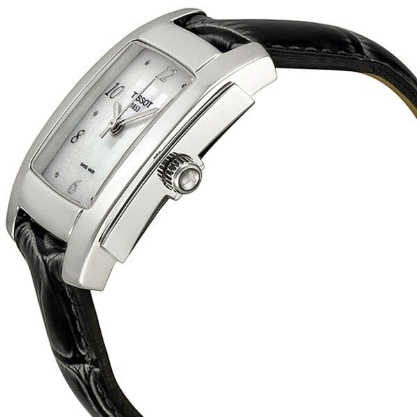 TISSOT T0733101611600 T-Trend T10 Quartz - женские кварцевые наручные часы Корпус этих часов небольшого размера (254 мм) и выполнен из нержавеющей стали L316 металлического цвета Модель TISSOT T0733101611600 T-Trend T10 Quartz имеет устойчивое к царапинам сапфировое стекло, ремешок из натуральной кожи черного цвета, белый циферблат Циферблат украшен 6 бриллиантами Калибр механизма: ETA F03111 Класс водозащиты: 30 м / 3 АТМ (защита от брызг и случайных капель) Дополнительные функции и особенности: нет Полная заводская комплектация TISSOT: оригинальные часы, фирменная коробка, инструкция, сервисная книжка, роман о часовой фабрике, миникаталог, замшевый фирменный чехол черного цвета для хранения и/или переноски часов, кассовый и товарный чеки Международная гарантия 2 года Производство и сборка: Швейцария