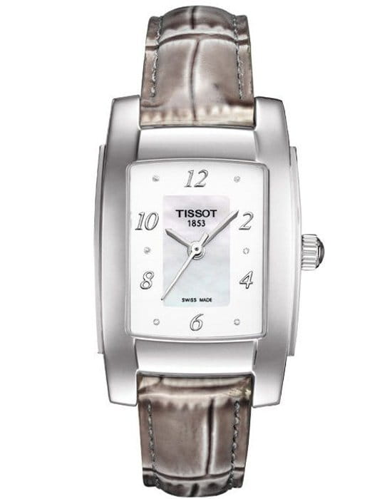TISSOT T0733101611601 T-Trend T10 Quartz - женские кварцевые наручные часы Корпус этих часов небольшого размера (254 мм) и выполнен из нержавеющей стали L316 металлического цвета Модель TISSOT T0733101611601 T-Trend T10 Quartz имеет устойчивое к царапинам сапфировое стекло, ремешок из натуральной кожи черного цвета, белый циферблат Циферблат украшен 6 бриллиантами Калибр механизма: ETA F03111 Класс водозащиты: 30 м / 3 АТМ (защита от брызг и случайных капель) Дополнительные функции и особенности: нет Полная заводская комплектация TISSOT: оригинальные часы, фирменная коробка, инструкция, сервисная книжка, роман о часовой фабрике, миникаталог, замшевый фирменный чехол черного цвета для хранения и/или переноски часов, кассовый и товарный чеки Международная гарантия 2 года Производство и сборка: Швейцария