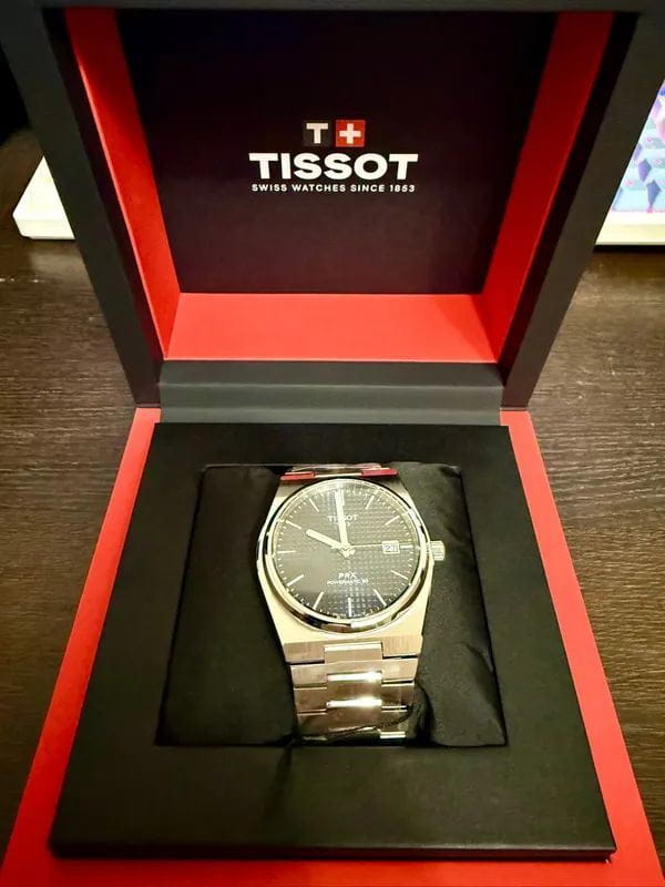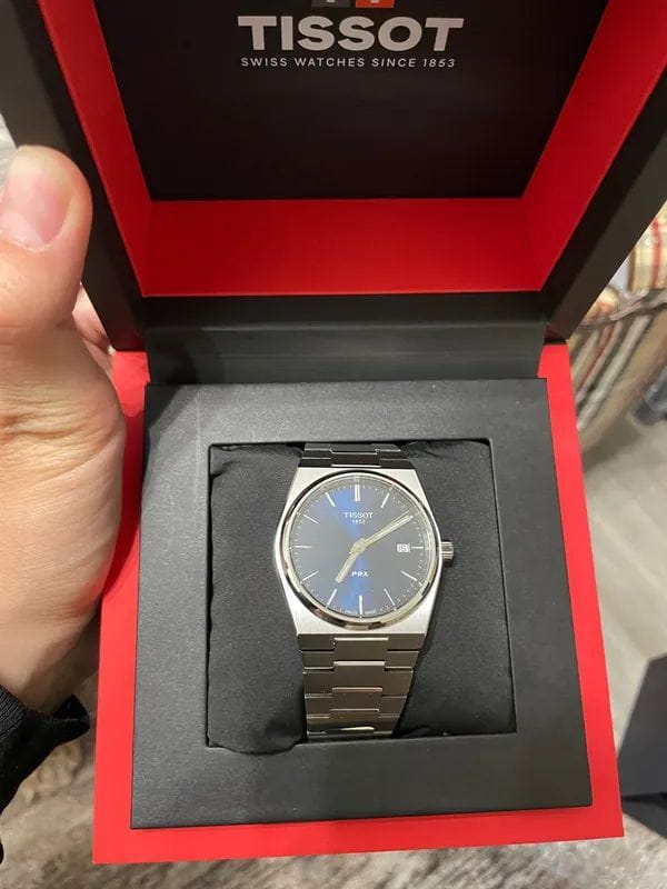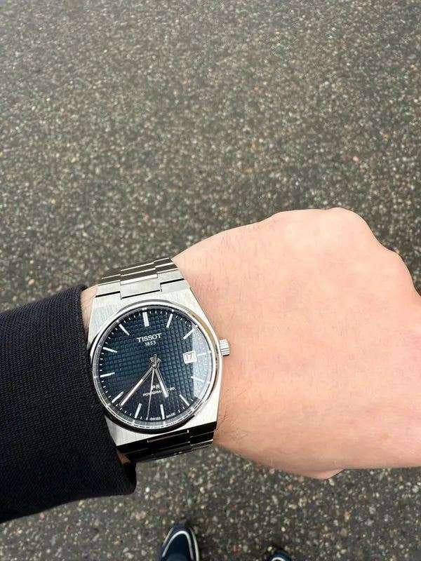 Tissot PRX 40mm (модель T137.410.11.041.00) – элегантные мужские часы, сочетающие стильный дизайн и надёжность. Корпус диаметром 40 мм выполнен из нержавеющей стали 316L, что обеспечивает долговечность и комфорт при ношении. Синий циферблат с эффектом солнечных лучей защищён сапфировым стекломСапфировое стеклоПрочный и надёжный материал из кристалла сапфира синтетического происхождения, характеризующийся особой твёрдостью и устойчивостью к царапинам и повреждениям., устойчивым к царапинам.
