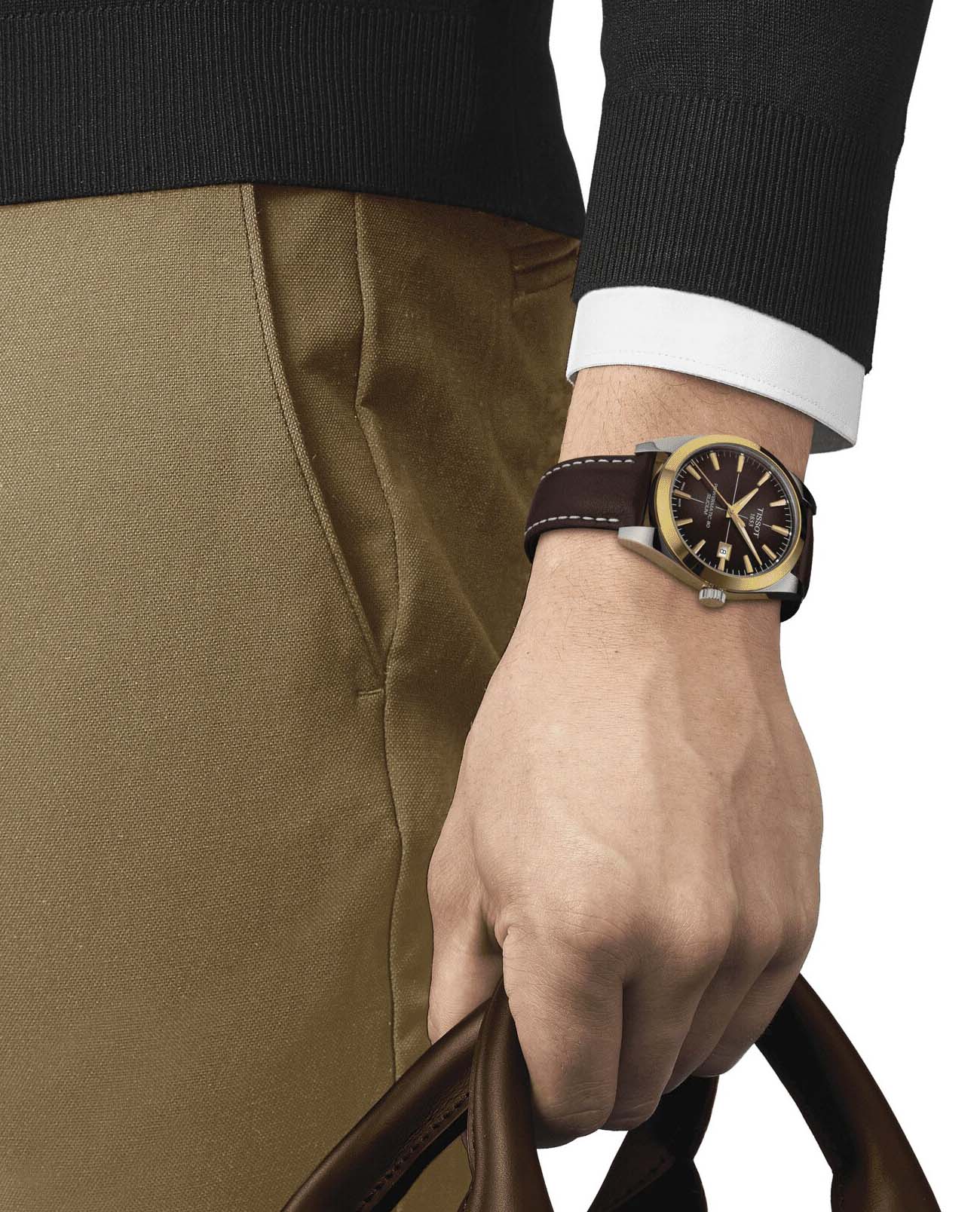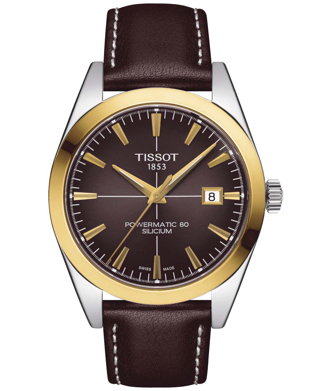 Швейцарские мужские механические часы Tissot Gentleman Powermatic 80 Silicium Solid 18K Gold Bezel T927.407.46.291.01