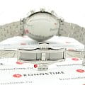 Модель не отличается богатым декором или броскими деталями, её особенность заключается в наличии полезного функционала и минималистичном строгом дизайне. Наручные часы привлекают серебристыми переливами корпуса и браслета, циферблат было решено оставить в белом цвете. Они комплектуются высокоточным кварцевым механизмом ETA G10.212. Сохранение водонепроницаемости при давлении до 50 бар. Надёжное сапфировое стекло. ХронографХронографФункция позволяет измерять отрезки времени с особой точностью: часы, минуты, секунды. Верным признаком хронографа является наличие на циферблате 3 дополнительных окошек-счётчиков., секундомер, отображение даты. . Габариты: 41 x 41 x 10,2 мм.