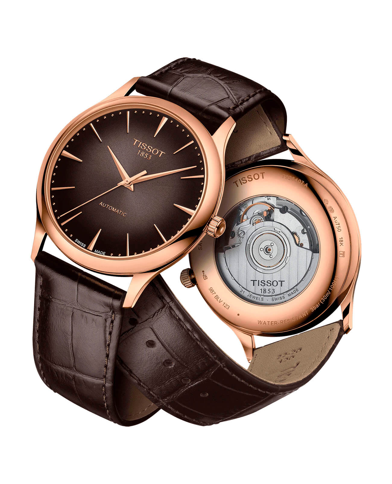 Мужские механические швейцарские часы Tissot Excellence Automatic 18K Gold T926.407.76.291.00 – блеск и элегантность в беспроигрышном сочетании.