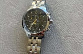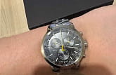 Эффектное чёрно-серебристое исполнение модели делает её идеальным вариантом для дополнения любого образа. Спортивный хронографХронографФункция позволяет измерять отрезки времени с особой точностью: часы, минуты, секунды. Верным признаком хронографа является наличие на циферблате 3 дополнительных окошек-счётчиков. обладает водонепроницаемостью при давлении 20 бар на глубине 200 метров, часы подходят для плавания и дайвинга. Кварцевый калибр ETA G10.211. Хирургическая сталь 316 L. Завинчивающаяся заводная головка и задняя крышка. Секундомер, тахиметрТахиметрРазмеченная шкала, располагается на ободке или безеле часов. Тахиметр позволяет рассчитать скорость на определённом участке пути, расстояние измеряется в километрах или милях., апертура даты. Габариты: 43 x 42 x 12 мм.