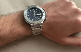 Стильное оформление корпуса выгодно подчеркнет повседневный образ. Высокая точность хода обусловлена наличием швейцарского кварцевого калибра ETA G10.212. Сапфировое стеклоСапфировое стеклоПрочный и надёжный материал из кристалла сапфира синтетического происхождения, характеризующийся особой твёрдостью и устойчивостью к царапинам и повреждениям. с антибликовым покрытием. Литой браслет из нержавеющей стали. Люминесцентная подсветкаЛюминесцентное покрытиеПозволяет считывать показания времени в темноте. Производители наносят на стрелки, часовые индексы, безель или поверхность циферблата светонакопительный состав, дающий холодное свечение. стрелок и меток. Корпус из нержавеющей стали. Водостойкость 100 метров. Секундомер, тахиметрТахиметрРазмеченная шкала, располагается на ободке или безеле часов. Тахиметр позволяет рассчитать скорость на определённом участке пути, расстояние измеряется в километрах или милях., индикация числа. Габариты: 45 x 45 x 11,8 мм.
