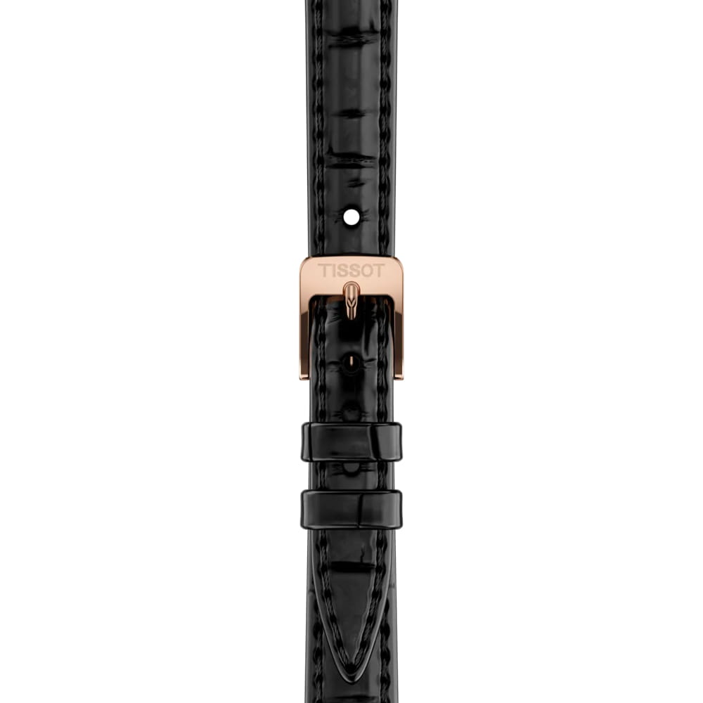 Женские кварцевые часы Tissot — это элегантный аксессуар, вдохновлённый стилем ар-деко 1920-х годов. Модель SRV сочетает геометрические формы и ретро-эстетику с современной технологией. Корпус прямоугольной формы размером 30×21,8 мм выполнен из нержавеющей стали 316L с PVD-покрытиемPVDУльтратонкое покрытие наносится в технике вакуумного напыления, сочетает в себе нитрид титана особой прочности со слоем золота или оксида хрома. Несёт в себе декоративную или защитную функцию. цвета розового золота. Циферблат перламутрового белого цвета оформлен римскими цифрами на позициях 12 и 6 часов. Циферблат защищён сапфировым стекломСапфировое стеклоПрочный и надёжный материал из кристалла сапфира синтетического происхождения, характеризующийся особой твёрдостью и устойчивостью к царапинам и повреждениям. с фасетированной огранкой, повторяющей форму корпуса. Часы оснащены чёрным кожаным ремешком из глянцевой кожи с эффектом лака и классической пряжкой. Благодаря системе быстрой замены ремешок можно легко поменять без использования инструментов. Водонепроницаемость 50 м позволяет использовать часы в повседневных условиях. Идеальный выбор для тех, кто ценит стиль, наследие и швейцарское качество.