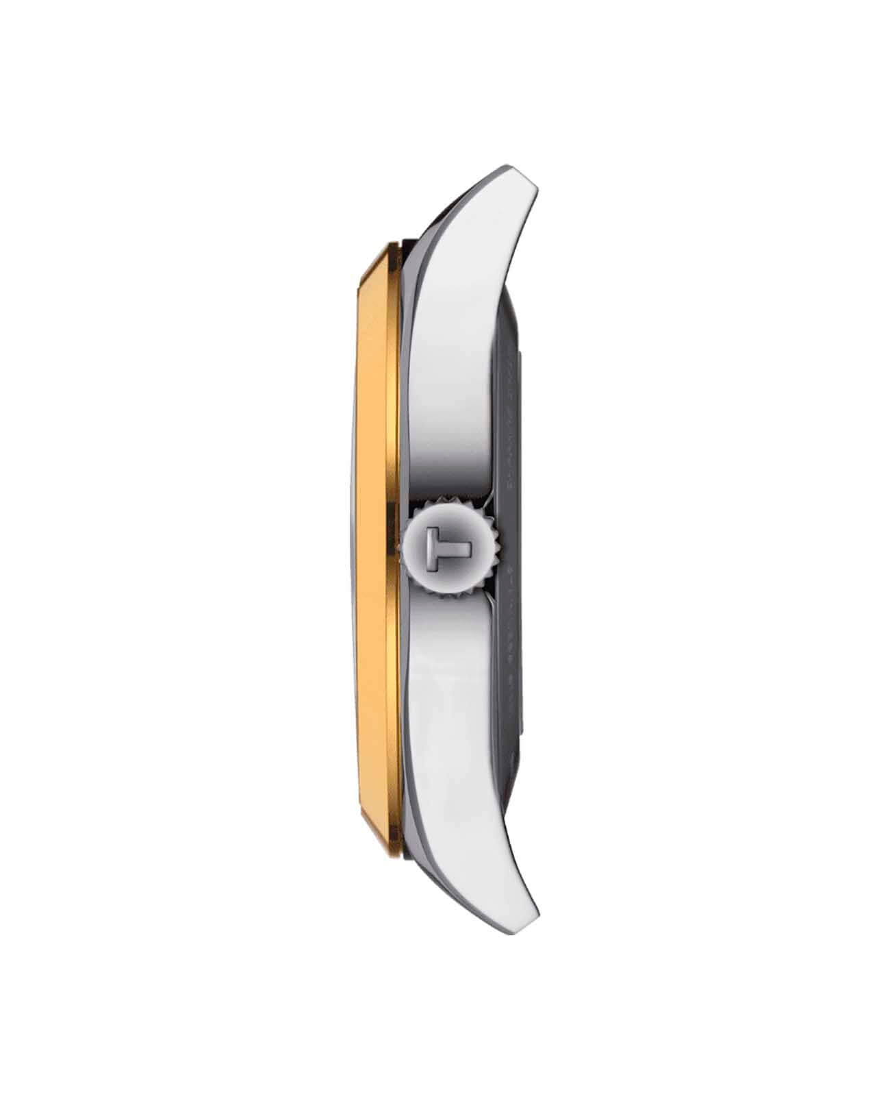Аксессуар идеально впишется в деловой гардероб, станет лучшим вариантом для рабочих будней и переговоров с партнёрами. БезельБезельВнешний ободок, закрепляющий стекло. В спортивных часах так называется поворотное кольцо с делениями на циферблате, выполняет роль таймера – замеряет отрезки времени на шкале. Неподвижный безель – элемент декора. Однонаправленно вращающийся безель на дайверских часах позволяет фиксировать моменты погружения и выныривания на поверхность. сделан из золота 18K, что не может не понравиться ценителем эксклюзива и лаконичного стиля. Высокая точность хода обеспечивается благодаря механизму Powermatic 80 SiliciumPowermatic 80 SiliciumМеханизм обладает самой высокой точностью хода за всю историю Tissot. Дополняется уникальной кремниевой спиралью, минимизирующей воздействие магнитных полей и перепада температур. Сохраняется запас хода до 80 часов благодаря удлиненной заводной пружине и снижению трения в системе спуска. с уникальной кремниевой спиралью. Прозрачная задняя крышка. Ударопрочный корпус из нержавеющей стали. . Отображение текущего числа. Габариты: 40 x 40 x 10,6 мм.