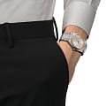 Часы Tissot PRX Powermatic 80 T931.407.41.291.00 Steel & 18k Gold поставляются с браслетом из нержавеющей стали. Браслет серебристого цвета с застежкой "бабочка" с кнопками для расстегивания браслета.