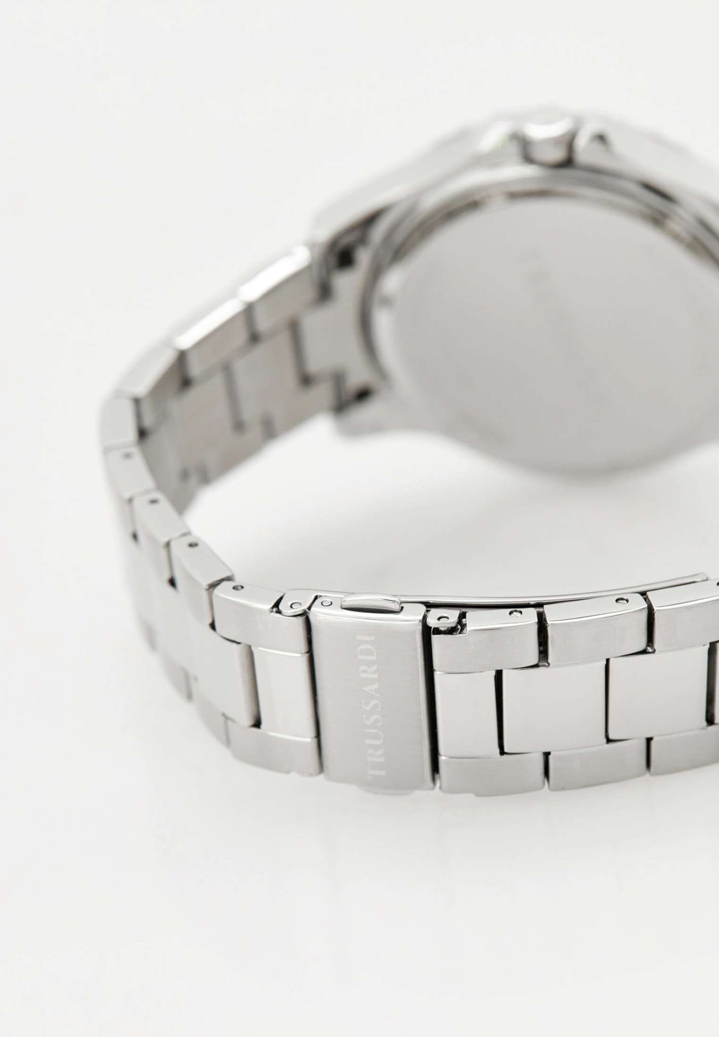 Итальянские мужские часы Trussardi City Life R2453169004 - это стильный мужской аксессуар, который сочетает элегантный дизайн и практичность. Корпус выполнен из нержавеющей стали с безелемБезельВнешний ободок, закрепляющий стекло. В спортивных часах так называется поворотное кольцо с делениями на циферблате, выполняет роль таймера – замеряет отрезки времени на шкале. Неподвижный безель – элемент декора. Однонаправленно вращающийся безель на дайверских часах позволяет фиксировать моменты погружения и выныривания на поверхность. с IP-покрытиемIP-покрытиеМетод ионного напыления. Демонстрирует повышенную устойчивость к истиранию, окислению и химическим веществам. Под воздействием высокого давления и температуры около 1500°C молекулы металла надёжно соединяются с частицами корпуса часов., что обеспечивает долговечность и утончённый внешний вид. Надежное минеральное стеклоМинеральное стеклоМинеральное стекло представляет собой искусственно выращенный минерал кварца. Такое стекло отличается особой устойчивостью к повреждениям и царапинам. Уступает по некоторым качествам сапфировому стеклу. защищает циферблат от царапин и обеспечивает долговечность. Модель оснащена кварцевым механизмом, обеспечивающим высокую точность хода. Браслет из нержавеющей стали с раскладной застёжкойРаскладная застёжкаТакой тип застёжки используется только на браслетах из металла. Она никогда не раскрывается полностью, происходит разделение на 2 и более частей. Раскладывающая застёжка снизит вероятность потери часов к минимуму. обеспечивает комфортное ношение. Водозащита 50 метров позволит защитить корпус от случайных брызг или капель дождя. Окошко даты в положении 3 часов. Стрелки метки оснащены люминесцентным покрытиемЛюминесцентное покрытиеПозволяет считывать показания времени в темноте. Производители наносят на стрелки, часовые индексы, безель или поверхность циферблата светонакопительный состав, дающий холодное свечение., обеспечивающим отличную видимость даже при слабом освещении. Эта модель – отличный выбор для тех, кто ищет сочетание стиля, качества и функциональности. Часы станут не только полезным аксессуаром, но и выразительным элементом вашего имиджа.