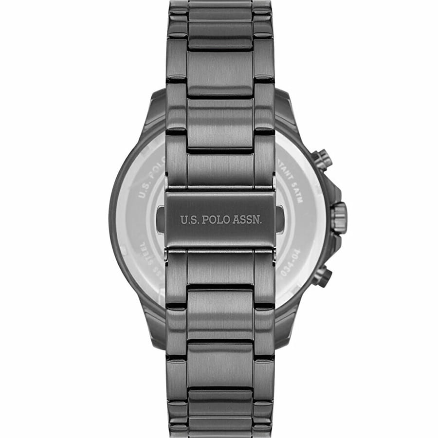 Мужские часы U.S. Polo Assn. Crossing USPA1034-07, кварцевый механизм с высокой точностью. Минеральное стеклоМинеральное стеклоМинеральное стекло представляет собой искусственно выращенный минерал кварца. Такое стекло отличается особой устойчивостью к повреждениям и царапинам. Уступает по некоторым качествам сапфировому стеклу. устойчивое к появлению царапин, обладающее высокой прозрачностью. Центральные часовая, минутная и секундная стрелки. Индикация даты и дня недели. 12/24х часовой формат времени. Корпус изготовлен из нержавеющей стали с IP-покрытиемIP-покрытиеМетод ионного напыления. Демонстрирует повышенную устойчивость к истиранию, окислению и химическим веществам. Под воздействием высокого давления и температуры около 1500°C молекулы металла надёжно соединяются с частицами корпуса часов.. На циферблате три дополнительных индикатора. Стрелки и метки с люминесцентным покрытиемЛюминесцентное покрытиеПозволяет считывать показания времени в темноте. Производители наносят на стрелки, часовые индексы, безель или поверхность циферблата светонакопительный состав, дающий холодное свечение.. Класс водозащиты: 50 метров, позволит защитить корпус от случайных брызг или капель дождя. Стальной браслет на раскладной застёжкеРаскладная застёжкаТакой тип застёжки используется только на браслетах из металла. Она никогда не раскрывается полностью, происходит разделение на 2 и более частей. Раскладывающая застёжка снизит вероятность потери часов к минимуму. с IP-покрытиемIP-покрытиеМетод ионного напыления. Демонстрирует повышенную устойчивость к истиранию, окислению и химическим веществам. Под воздействием высокого давления и температуры около 1500°C молекулы металла надёжно соединяются с частицами корпуса часов..