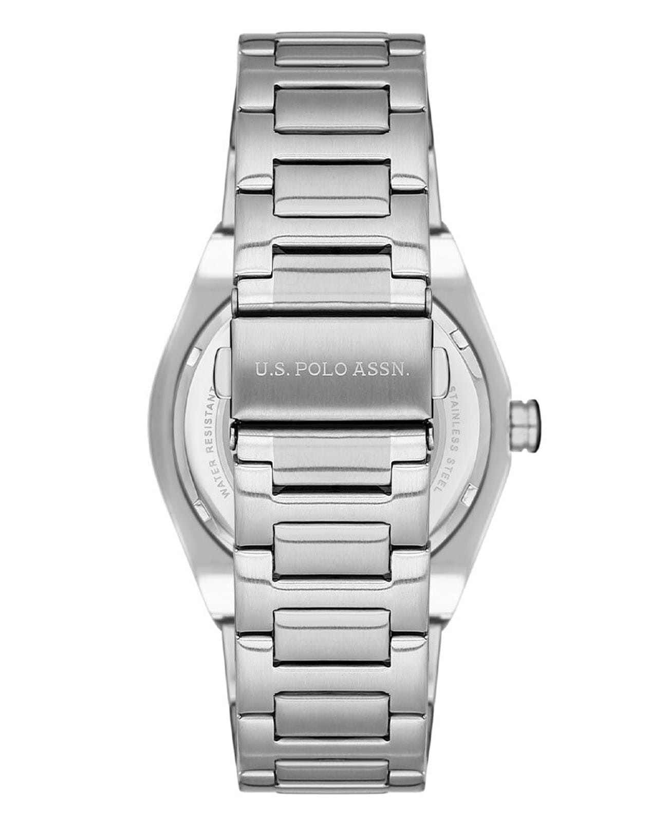 Мужские часы U.S. Polo Assn. Fundamental USPA1062-05, кварцевый механизм с высокой точностью. Минеральное стеклоМинеральное стеклоМинеральное стекло представляет собой искусственно выращенный минерал кварца. Такое стекло отличается особой устойчивостью к повреждениям и царапинам. Уступает по некоторым качествам сапфировому стеклу. устойчивое к появлению царапин, обладающее высокой прозрачностью. Корпус изготовлен из нержавеющей стали. Центральные часовая, минутная и секундная стрелки. Окошко даты находится в положении 3 часа. Стрелки с люминесцентным покрытиемЛюминесцентное покрытиеПозволяет считывать показания времени в темноте. Производители наносят на стрелки, часовые индексы, безель или поверхность циферблата светонакопительный состав, дающий холодное свечение.. Класс водозащиты: 50 метров, позволит защитить корпус от случайных брызг или капель дождя. Стальной браслет на раскладной застёжкеРаскладная застёжкаТакой тип застёжки используется только на браслетах из металла. Она никогда не раскрывается полностью, происходит разделение на 2 и более частей. Раскладывающая застёжка снизит вероятность потери часов к минимуму..