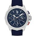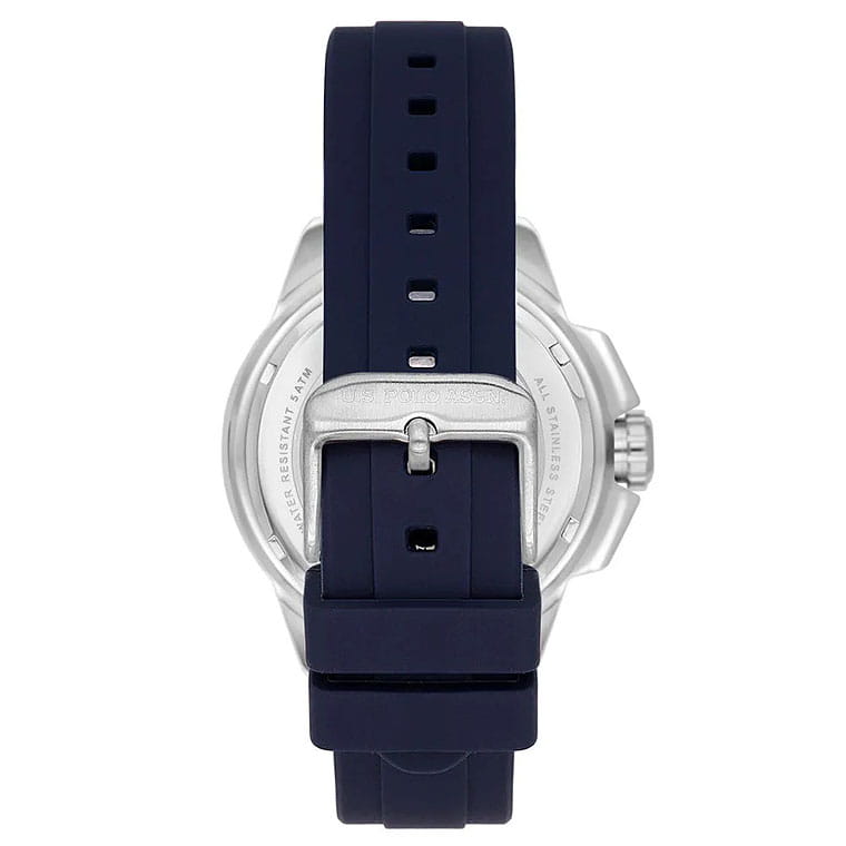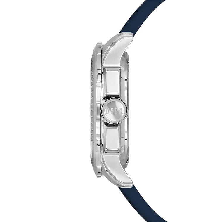 Мужские изысканные американские часы U.S. Polo Assn. Crossing USPA1066-02, кварцевый механизм с высокой точностью. Минеральное стеклоМинеральное стеклоМинеральное стекло представляет собой искусственно выращенный минерал кварца. Такое стекло отличается особой устойчивостью к повреждениям и царапинам. Уступает по некоторым качествам сапфировому стеклу. устойчивое к появлению царапин, обладающее высокой прозрачностью. Корпус изготовлен из нержавеющей стали с поворотным безелемБезельВнешний ободок, закрепляющий стекло. В спортивных часах так называется поворотное кольцо с делениями на циферблате, выполняет роль таймера – замеряет отрезки времени на шкале. Неподвижный безель – элемент декора. Однонаправленно вращающийся безель на дайверских часах позволяет фиксировать моменты погружения и выныривания на поверхность.. На стильном синем циферблате три дополнительных индикатора. Центральные часовая, минутная и секундная стрелки. Индикация даты и дня недели. 12/24х часовой формат времени. Класс водозащиты: 50 метров, позволит защитить корпус от случайных брызг или капель дождя. Силиконовый ремешок синего цвета со стандартной застежкой безупречно дополняет корпус. Стрелки оснащены люминесцентным покрытиемЛюминесцентное покрытиеПозволяет считывать показания времени в темноте. Производители наносят на стрелки, часовые индексы, безель или поверхность циферблата светонакопительный состав, дающий холодное свечение., обеспечивающим хорошую читаемость в темноте. Модель подчёркивает индивидуальность владельца и идеально подходит как для повседневного, так и для делового образа.