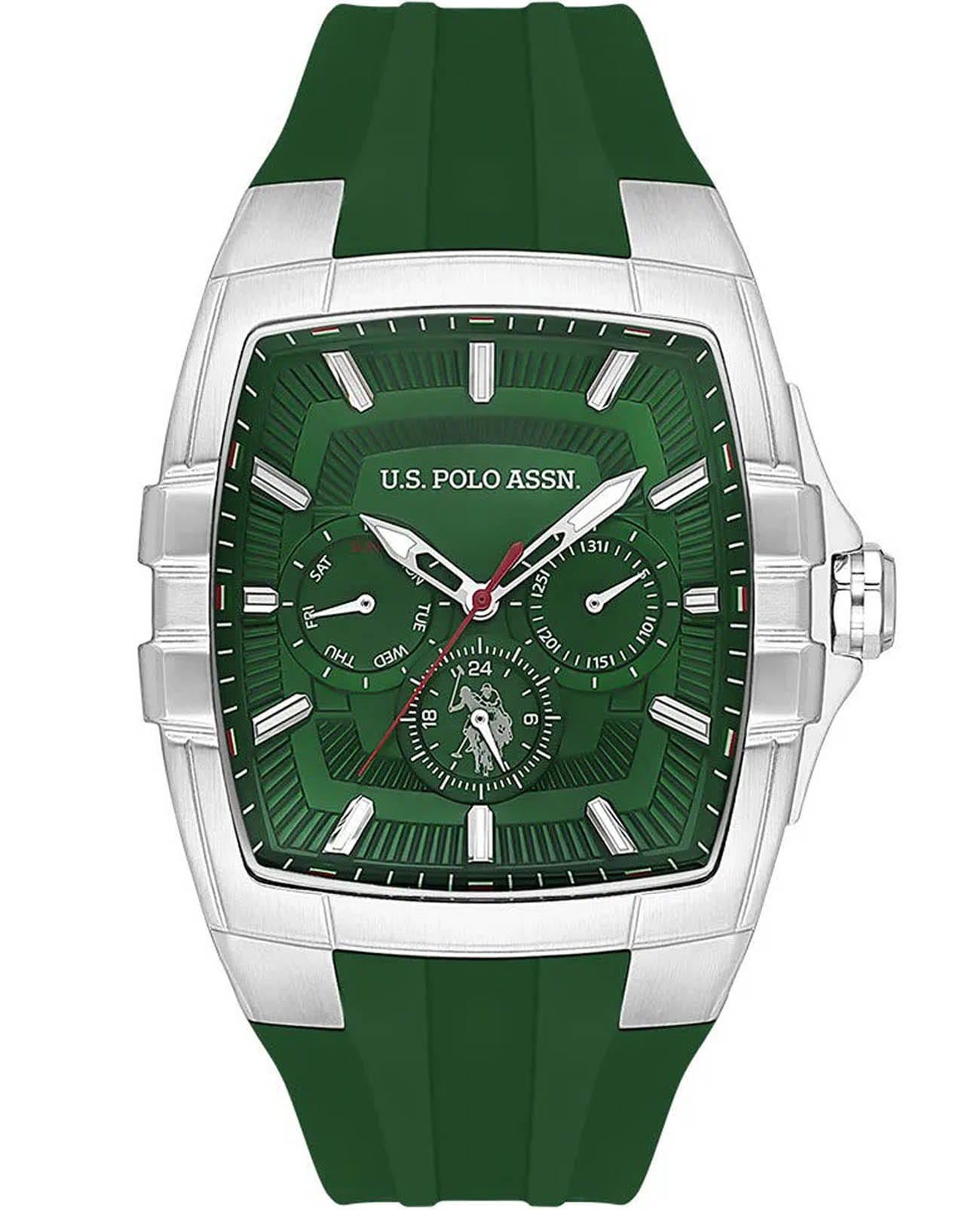 Мужские элегантные американские часы U.S. Polo Assn. Crossing USPA1093-02 обладают кварцевым механизмом с высокой точностью. Минеральное стеклоМинеральное стеклоМинеральное стекло представляет собой искусственно выращенный минерал кварца. Такое стекло отличается особой устойчивостью к повреждениям и царапинам. Уступает по некоторым качествам сапфировому стеклу. устойчивое к появлению царапин, обладающее высокой прозрачностью. Изысканный корпус изготовлен из нержавеющей стали. Привлекательные центральные часовая, минутная и секундная стрелки. 24-х часовой формат времени, дата и день недели вынесены на отдельный циферблат. Часы оснащены люминесцентным покрытиемЛюминесцентное покрытиеПозволяет считывать показания времени в темноте. Производители наносят на стрелки, часовые индексы, безель или поверхность циферблата светонакопительный состав, дающий холодное свечение., обеспечивающим хорошую читаемость в темноте. Класс водозащиты: 30 метров, позволит защитить корпус от случайных брызг или капель дождя. Силиконовый ремень со стандартной застежкой обеспечивает комфорт и удобство в использовании, добавляя завершающий штрих к этому стильному и высокоэффективному аксессуару. Это практичный и стильный инструмент для активной повседневности, объединяющий точный механизм и удобство.