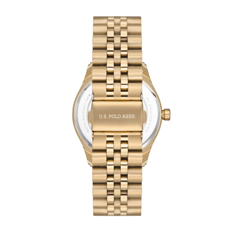 Женские часы U.S. Polo Assn USPA2028-03, кварцевый механизм с высокой точностью. Минеральное стеклоМинеральное стеклоМинеральное стекло представляет собой искусственно выращенный минерал кварца. Такое стекло отличается особой устойчивостью к повреждениям и царапинам. Уступает по некоторым качествам сапфировому стеклу. устойчивое к появлению царапин, обладающее высокой прозрачностью. Корпус изготовлен из нержавеющей стали. БезельБезельВнешний ободок, закрепляющий стекло. В спортивных часах так называется поворотное кольцо с делениями на циферблате, выполняет роль таймера – замеряет отрезки времени на шкале. Неподвижный безель – элемент декора. Однонаправленно вращающийся безель на дайверских часах позволяет фиксировать моменты погружения и выныривания на поверхность. из нержавеющей стали с IP-покрытиемIP-покрытиеМетод ионного напыления. Демонстрирует повышенную устойчивость к истиранию, окислению и химическим веществам. Под воздействием высокого давления и температуры около 1500°C молекулы металла надёжно соединяются с частицами корпуса часов.. Класс водозащиты: 50 метров, позволит защитить корпус от случайных брызг или капель дождя. Стальной браслет с частичным IP-покрытиемIP-покрытиеМетод ионного напыления. Демонстрирует повышенную устойчивость к истиранию, окислению и химическим веществам. Под воздействием высокого давления и температуры около 1500°C молекулы металла надёжно соединяются с частицами корпуса часов. на раскладной застёжкеРаскладная застёжкаТакой тип застёжки используется только на браслетах из металла. Она никогда не раскрывается полностью, происходит разделение на 2 и более частей. Раскладывающая застёжка снизит вероятность потери часов к минимуму..