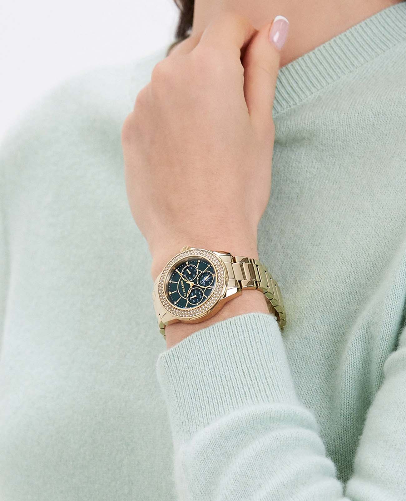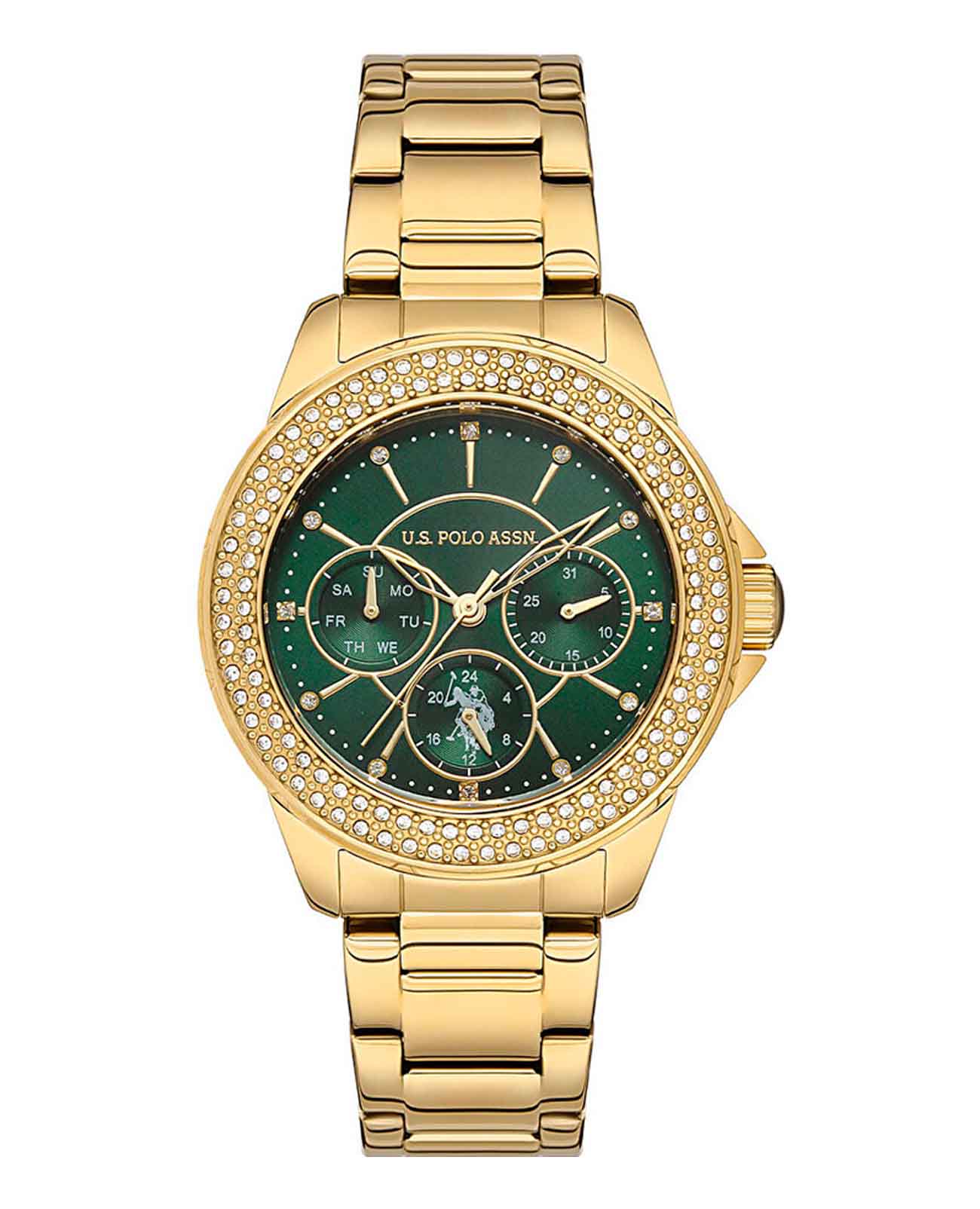 Женские часы U.S. Polo Assn Crossing USPA2042-06, кварцевый механизм с высокой точностью. Минеральное стеклоМинеральное стеклоМинеральное стекло представляет собой искусственно выращенный минерал кварца. Такое стекло отличается особой устойчивостью к повреждениям и царапинам. Уступает по некоторым качествам сапфировому стеклу. устойчивое к появлению царапин, обладающее высокой прозрачностью. Центральные часовая, минутная и секундная стрелки. Индикация даты и дня недели. 12/24х часовой формат времени. Корпус изготовлен из нержавеющей стали с IP-покрытиемIP-покрытиеМетод ионного напыления. Демонстрирует повышенную устойчивость к истиранию, окислению и химическим веществам. Под воздействием высокого давления и температуры около 1500°C молекулы металла надёжно соединяются с частицами корпуса часов.. БезельБезельВнешний ободок, закрепляющий стекло. В спортивных часах так называется поворотное кольцо с делениями на циферблате, выполняет роль таймера – замеряет отрезки времени на шкале. Неподвижный безель – элемент декора. Однонаправленно вращающийся безель на дайверских часах позволяет фиксировать моменты погружения и выныривания на поверхность. и циферблат украшены кристаллами. На циферблате три дополнительных индикатора. Класс водозащиты: 50 метров, позволит защитить корпус от случайных брызг или капель дождя. Стальной браслет с IP-покрытиемIP-покрытиеМетод ионного напыления. Демонстрирует повышенную устойчивость к истиранию, окислению и химическим веществам. Под воздействием высокого давления и температуры около 1500°C молекулы металла надёжно соединяются с частицами корпуса часов. на раскладной застёжкеРаскладная застёжкаТакой тип застёжки используется только на браслетах из металла. Она никогда не раскрывается полностью, происходит разделение на 2 и более частей. Раскладывающая застёжка снизит вероятность потери часов к минимуму..