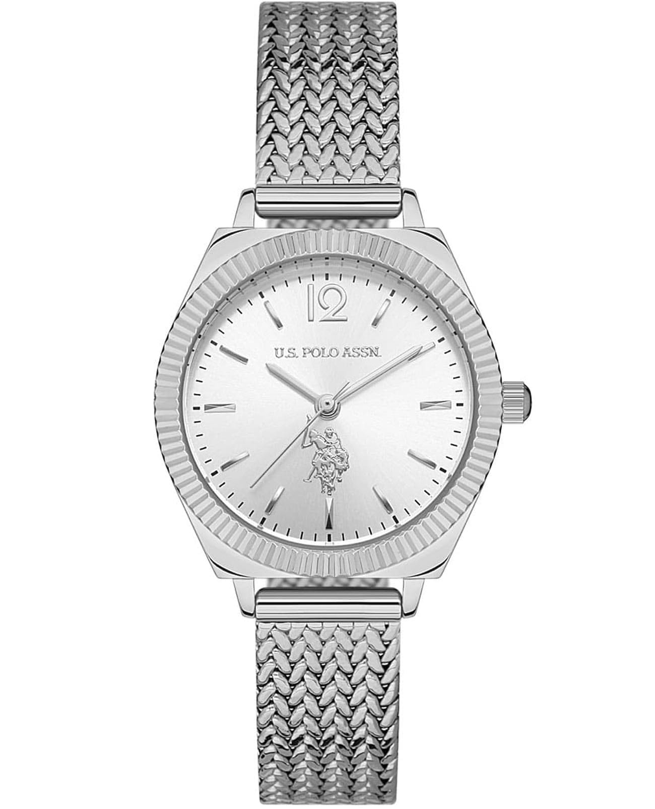 Женские часы U.S. Polo Assn. Stile USPA2062-01 кварцевый механизм с высокой точностью. Минеральное стеклоМинеральное стеклоМинеральное стекло представляет собой искусственно выращенный минерал кварца. Такое стекло отличается особой устойчивостью к повреждениям и царапинам. Уступает по некоторым качествам сапфировому стеклу. устойчивое к появлению царапин, обладающее высокой прозрачностью. Корпус изготовлен из нержавеющей стали. Класс водозащиты: 50 метров, позволит защитить корпус от случайных брызг или капель дождя. Стальной плетеный браслет на раскладном замкеРаскладной замокДанный вариант застежки используется только на часах с металлическим браслетом. Отличительная особенность такого крепления в том, что длина браслета становится универсальной и вы можете самостоятельно отрегулировать нужный вам размер – застежка просто двигается по браслету часов..