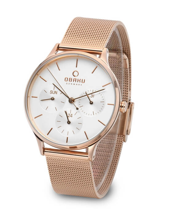 Часы Lind Rose — это прекрасное сочетание отличного дизайна и функциональности Эти часы имеют браслет Mesh из нержавеющей стали цвета розового золота, корпус цвета розового золота из нержавеющей стали и белый циферблат с многофункциональным механизмом Дизайн часов разработан датским дизайнером Кристианом Миккельсеном Он приложил все усилия для создания часов с превосходным внешним видом и возможностью смены браслета