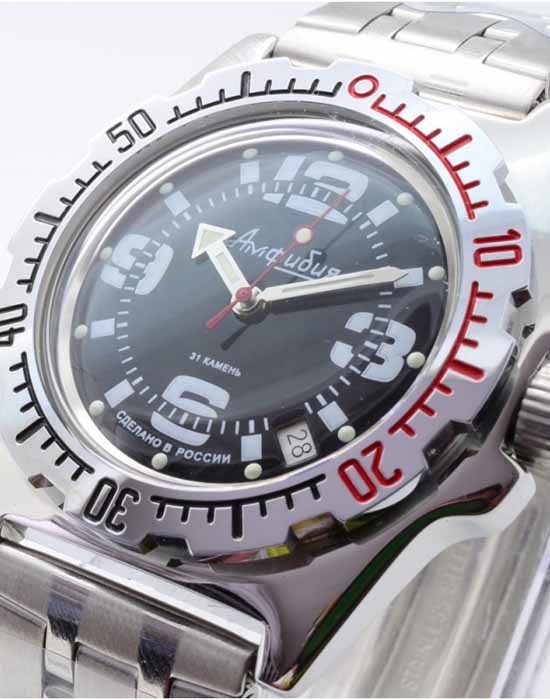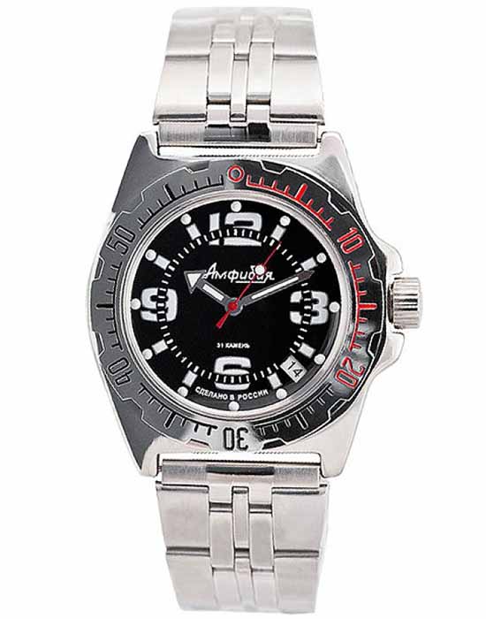 Российские механические часы Амфибия Восток Амфибия 110903, механический механизм (автоматический калибр) с высокой точностью. Класс водозащиты: 200 метров, позволит плавать, нырять и заниматься другими водными видами спорта. Корпус часов изготовлен из стали, серебристого цвета.