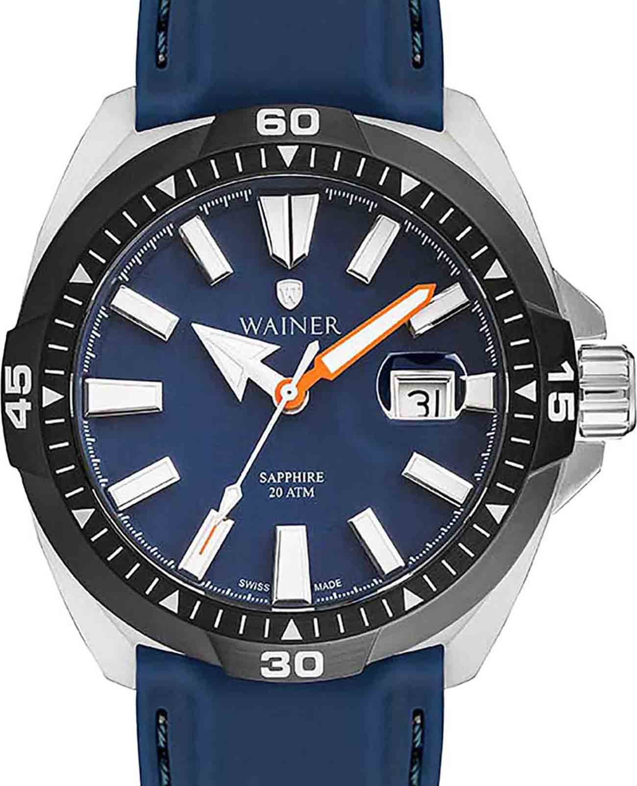 Швейцарские мужские кварцевые часы Wainer WA.10922-B с механизмом калибра Ronda 515 станут превосходным выбором для мужчин, ценящих надежность и стиль. Круглый корпус из нержавеющей стали 316L с частичным PVD-покрытиемPVDУльтратонкое покрытие наносится в технике вакуумного напыления, сочетает в себе нитрид титана особой прочности со слоем золота или оксида хрома. Несёт в себе декоративную или защитную функцию. диаметром 44 мм защищен прочным сапфировым стекломСапфировое стеклоПрочный и надёжный материал из кристалла сапфира синтетического происхождения, характеризующийся особой твёрдостью и устойчивостью к царапинам и повреждениям.. Циферблат украшен фирменным логотипом Wainer и метками в виде штрихов, а окошко даты с увеличительным стеклом расположено в положении 3 часа. Рифленая заводная головка с защитой обеспечивает дополнительную надежность механизма. Часы имеют класс водозащиты 200 метров, позволит плавать, нырять и заниматься другими водными видами спорта. Модель комплектуется силиконовым ремешком на стандартной застежке. Прочный корпус и высококачественный механизм гарантируют долговечность использования, делая эти часы идеальным аксессуаром для активного образа жизни.