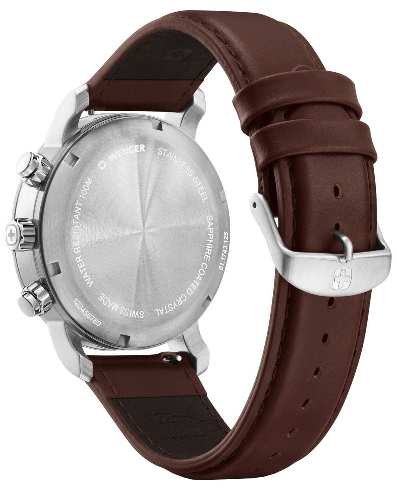 Мужские швейцарские часы с хронографом Wenger Urban classic 01.1743.125, с высокой точностью. Класс водозащиты: 100 метров, позволит плавать, нырять и заниматься другими водными видами спорта. Корпус часов изготовлен из стали, цвета.