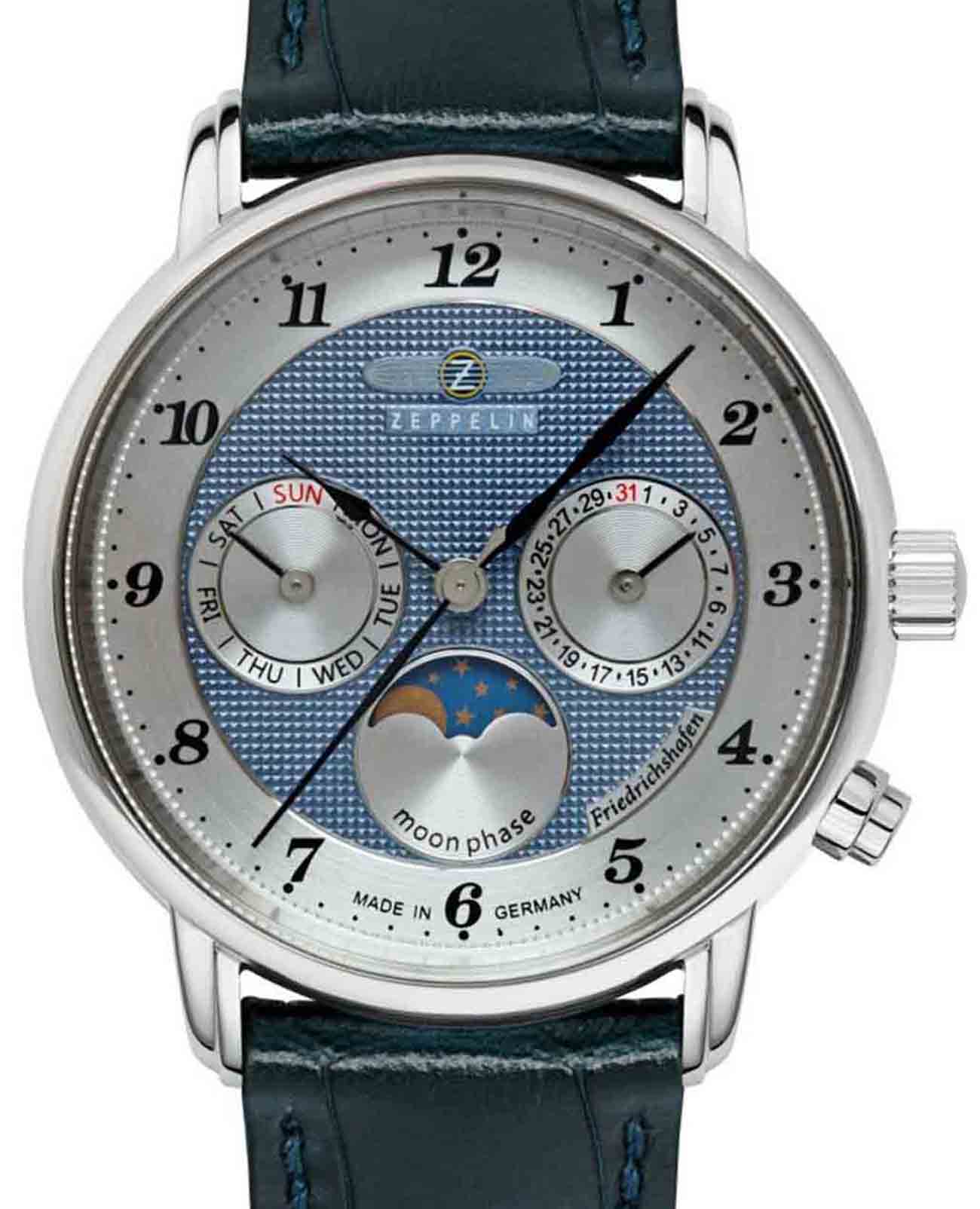 Часы Zeppelin 8537-3 — это элегантные женские часы, идеально подходящие для женщин, ценящих классику и функциональность. Корпус из нержавеющей стали серебристого цвета идеально сочетается с синим циферблатом, украшенным гильошированным узором Парижа. Часы оснащены точным кварцевым механизмом Ronda 706.1 и индикатором фазы луны, что придает им неповторимый характер. Циферблат защищен закаленным минеральным стекломМинеральное стеклоМинеральное стекло представляет собой искусственно выращенный минерал кварца. Такое стекло отличается особой устойчивостью к повреждениям и царапинам. Уступает по некоторым качествам сапфировому стеклу., а темно-синий кожаный ремешок придает им элегантности. Кроме того, водонепроницаемость часов составляет 50 метров, так что вы можете спокойно принимать в них душ. Эти часы подойдут для повседневного ношения и станут ярким акцентом в вашем наряде.